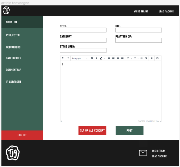 Dinsdag heb ik een gesprek gehad met mijn stagebegeleider over mijn stageblog en hebben we besproken wat erin zou moeten. Na het gesprek ben ik begonnen met het design van mijn cms.