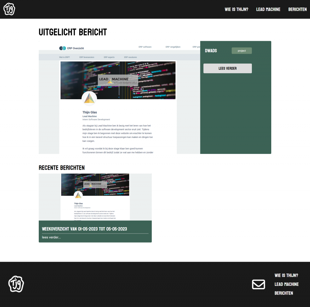 woensdag ben ik verder gegaan met de wie is Thijn pagina en heb ik de berichten pagina gemaakt. Op deze pagina komen de berichten van mijn weekoverzichten en projecten.