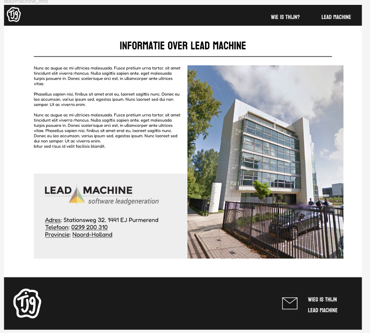 ik heb ook een informatie pagina gemaakt over lead machine zodat als er mensen op de website komen ze ook wat over mijn stage zelf kunnen vinden. hier komen nog een paar kleine aanpassingen op.